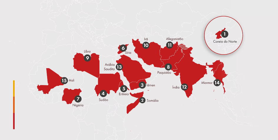 Na LMP 2026, 15 países enfrentam perseguição extrema, dois a mais que na edição anterior. A Síria voltou a apresentar perseguição extrema, ocupando a 6ª posição devido ao aumento do índice de violência causado por ataques a igrejas, fechamento de escolas cristãs e aumento no número de morte dos seguidores de Jesus. O Mali surge no 15º lugar, atingindo o nível máximo de violência. Os cristãos no Mali são alvos de extremistas islâmicos e sofrem com intimidação, deslocamento forçado, extorsão e ataques a igrejas e comunidades.
