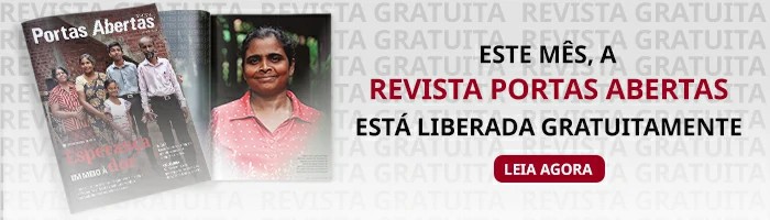 Em virtude da situação de isolamento social em que estamos vivendo, a Portas Abertas liberou o conteúdo exclusivo da Revista Portas Abertas ao público geral. A revista, que sai mensalmente, é o carro-chefe da comunicação sobre os cristãos perseguidos. Todos os meses, o leitor tem acesso a testemunhos impactantes, calendário de oração para interceder todos os dias pelos cristãos perseguidos, além de informações sobre os projetos do campo.